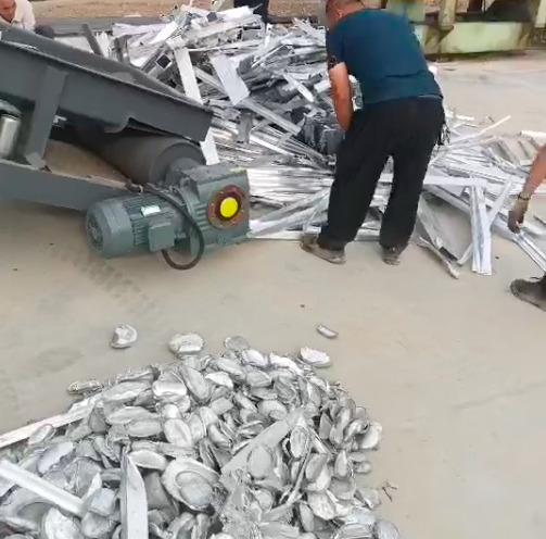 上料流程始于物料輸送帶的穩(wěn)定傳送,抵達(dá)破碎倉內(nèi)。在那高速旋轉(zhuǎn)的錘頭將其均勻破碎成小顆粒狀,隨后被順暢地引導(dǎo)至出料口。接著這些小顆粒通過第二段輸送帶的接力,被送入磁選機(jī)中,有效篩除混雜其中的鐵質(zhì)物料,沿著第三條輸送帶送往料堆區(qū)域。純凈的鋁料被送入準(zhǔn)備好的對坑內(nèi)等待后續(xù)的儲存或進(jìn)一步加工處理。